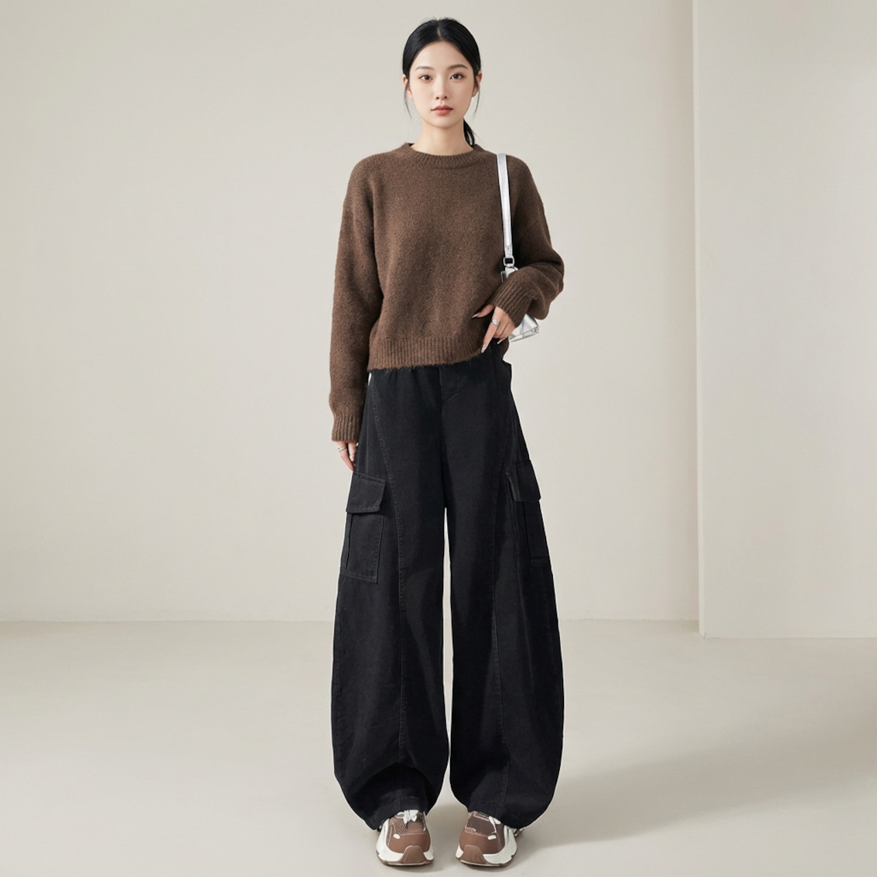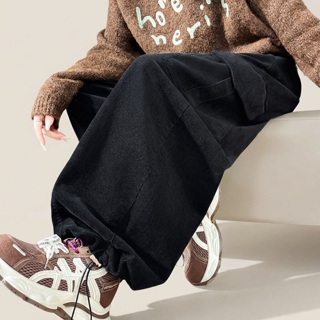 テーパードシルエットなので、カジュアルながらもすっきりとした印象を与えます。おうちでのリラックスタイムから、ちょっとしたお出かけまで、幅広く活躍するアイテムです。