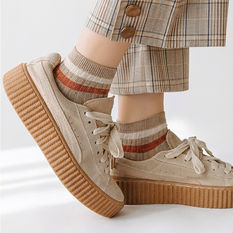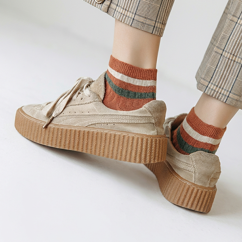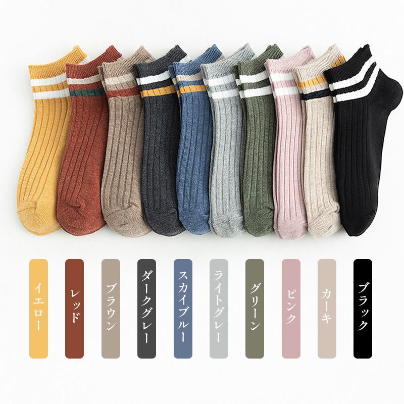 カジュアルなスタイルにぴったりの、ライン入りショート/ミドル丈ソックス。