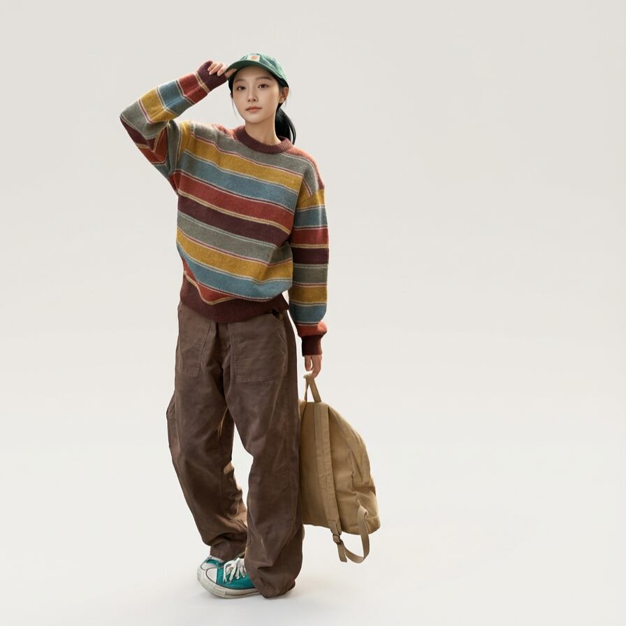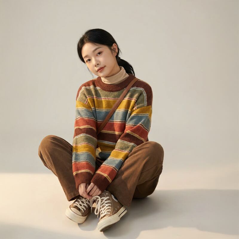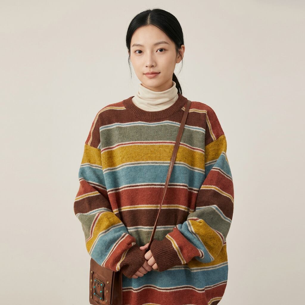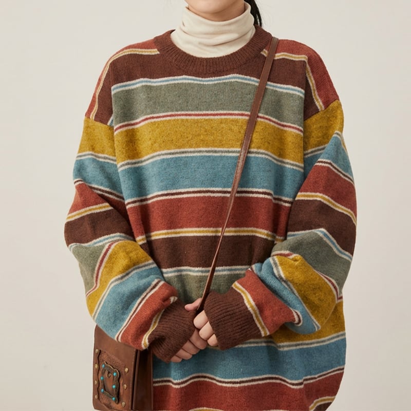 カジュアルながらも、どこかレトロな雰囲気漂うニットです。