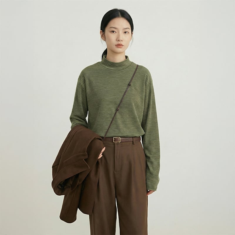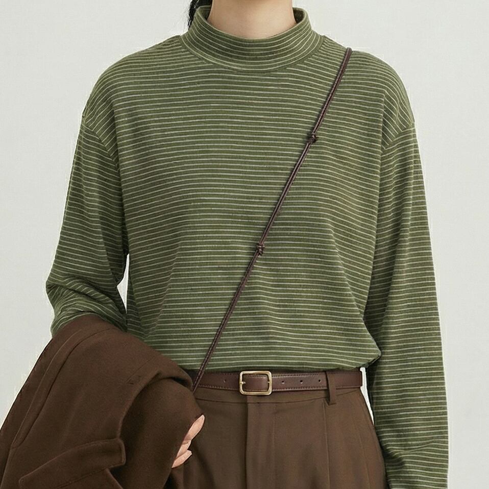 ボーダー 長袖 モックネック カットソー