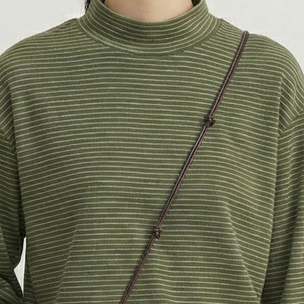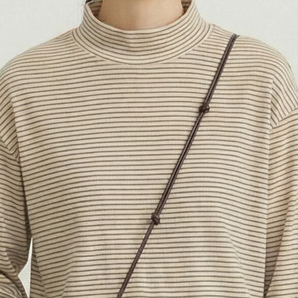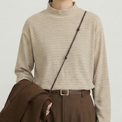 ボーダー 長袖 モックネック カットソー M015
