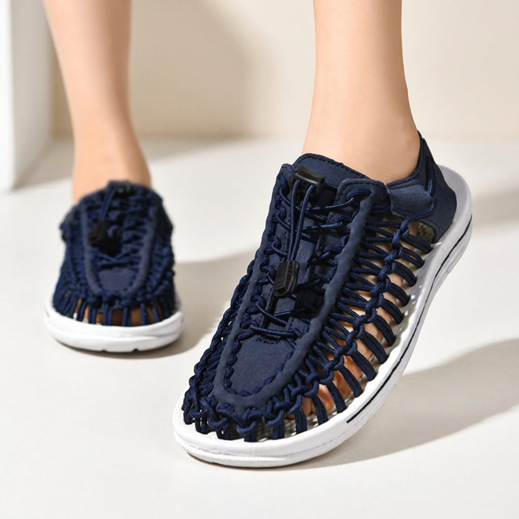 コード編み フラット サンダル ブルー M032