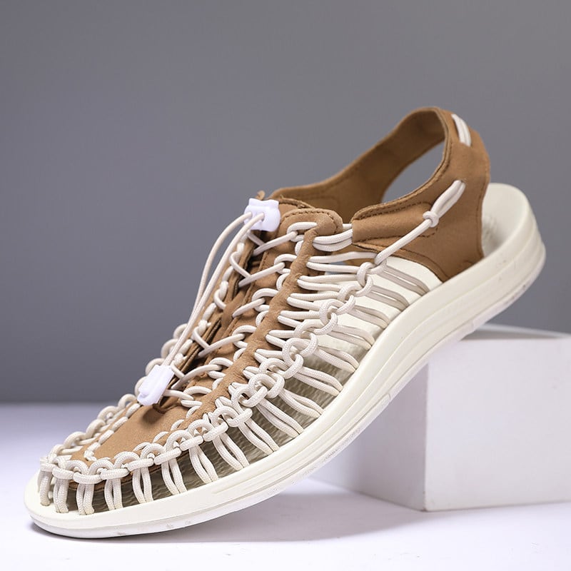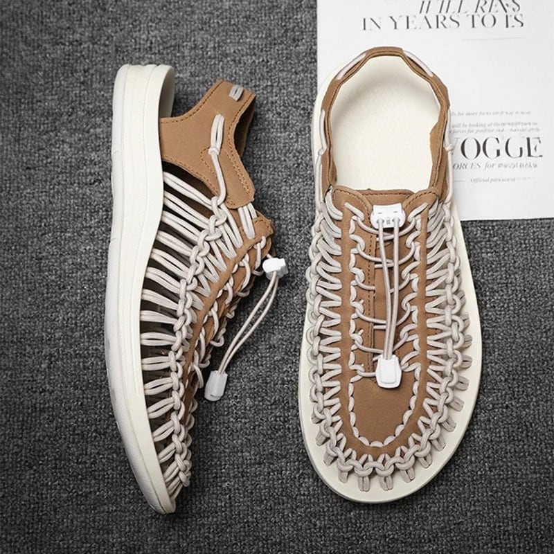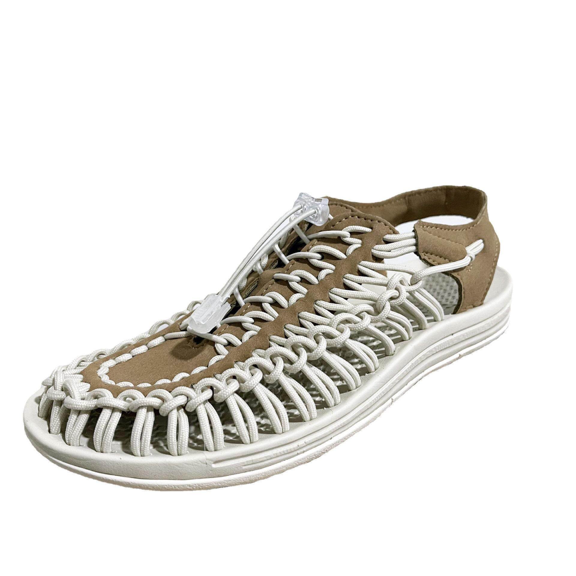 コード編み フラット サンダル ホワイトブラウン M034