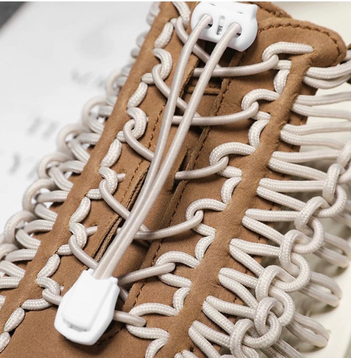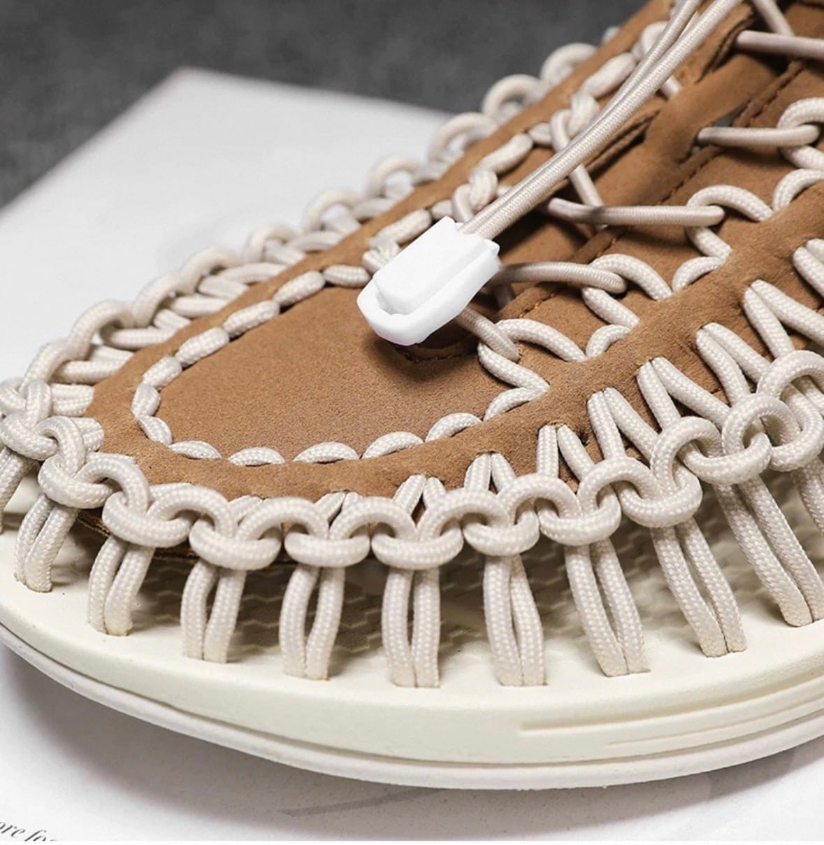 コード編み フラット サンダル ホワイトブラウン